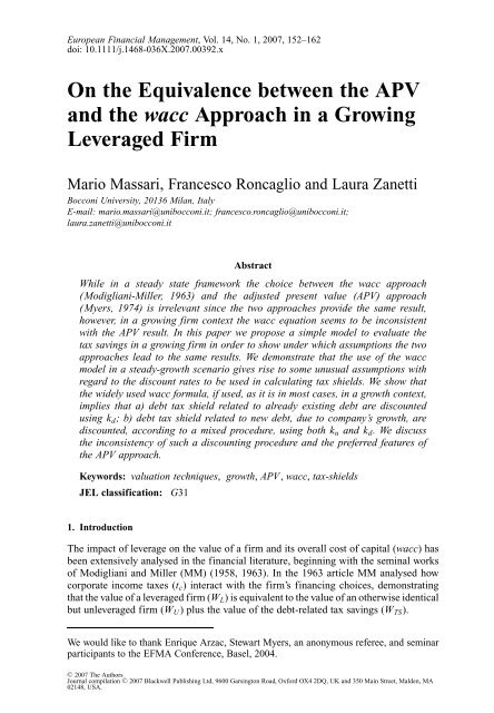 Pdf Equivalence Between The Fcf Method The Ccf Method And The Apv Approach